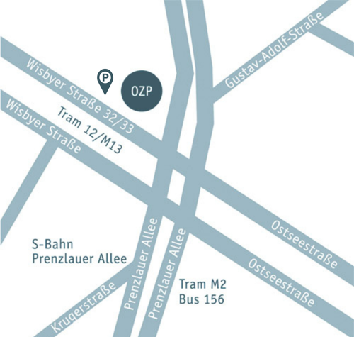 Sie finden uns an der Kreuzung Prenzlauer Promenade / Wisbyer Straße